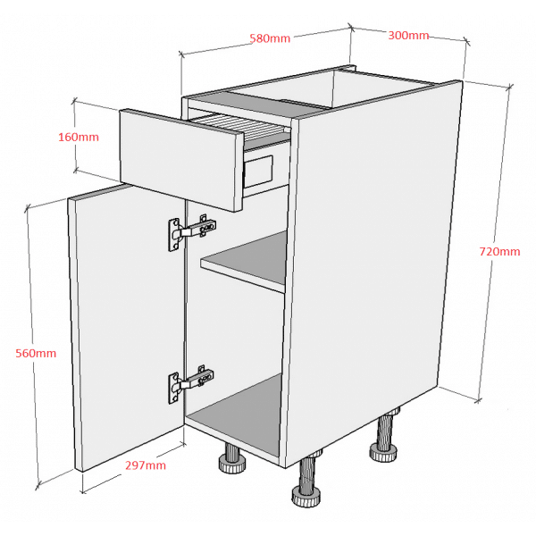 300mm wide Drawer Line Single Base Unit, solid-quality and durable, ideal for narrow storage spaces.