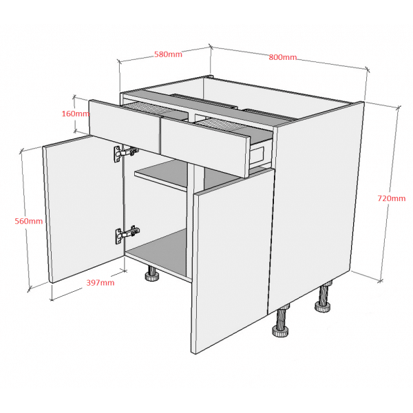 The 800 DrawerLine Double Base Unit offers a practical and stylish storage solution, combining both drawer and cupboard space to accommodate a variety of kitchen essentials. Ideal for modern and traditional kitchens alike, this unit maximizes storage with its well-designed configuration. It comes Flat-Packed (ready to assemble).
