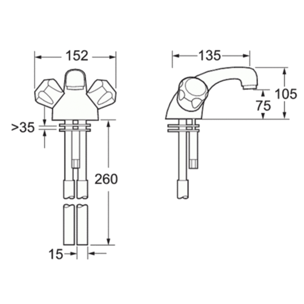 Contract range tap to fit any one tap hole wash hand basin in commercial or domestic use.